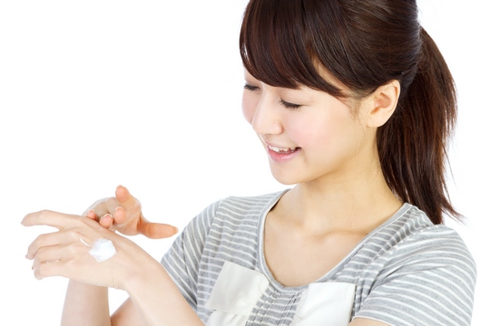 3.擦上適量的保濕霜