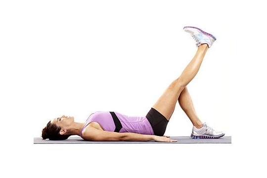 Step 2 右腳小腿收緊大腿的肌肉,將右腳緩緩地盡量抬高,維持2秒,然後緩緩放下,完成20次後換左腳重覆再做。